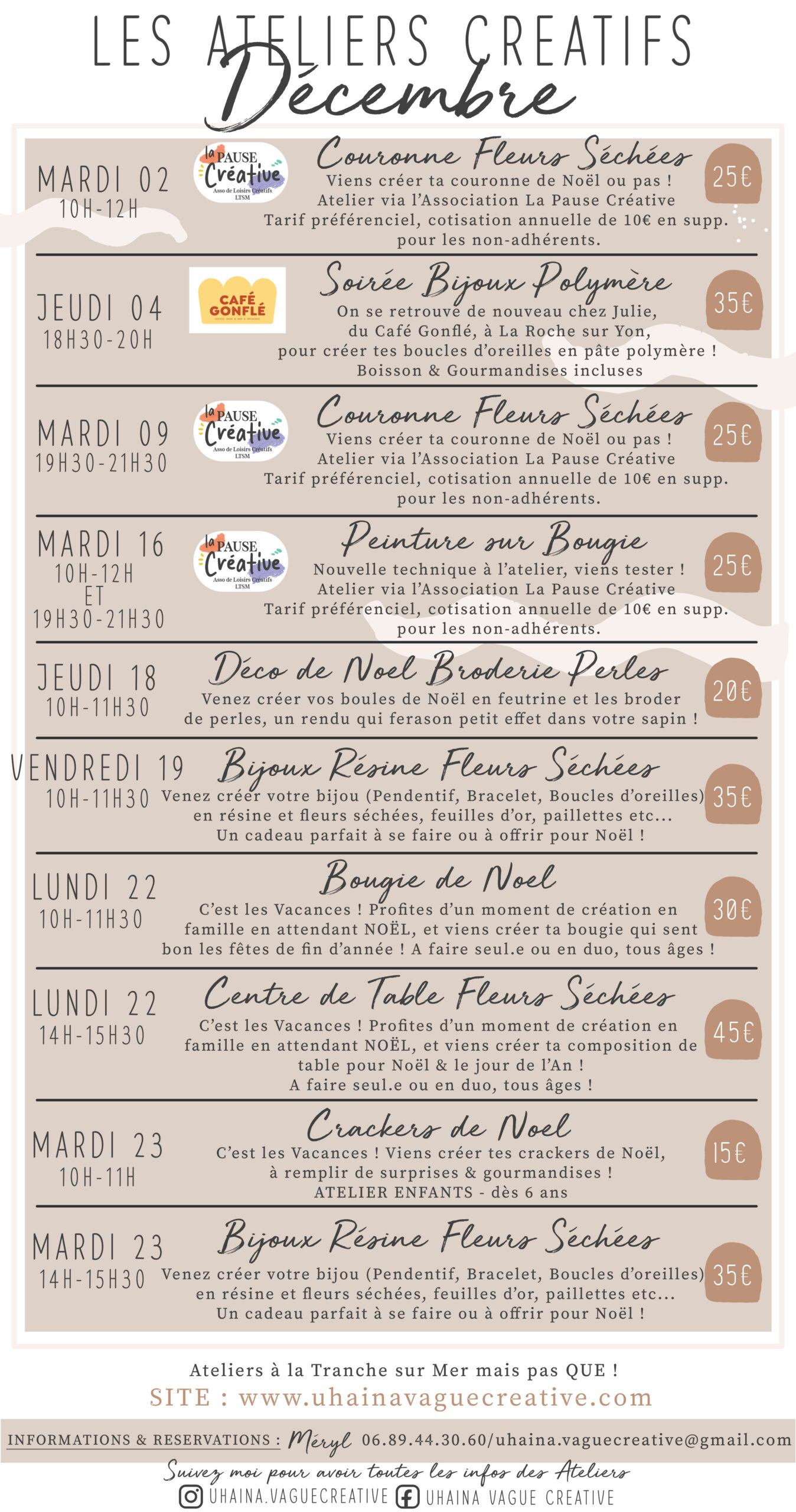 Pensez à réserver par mail, en MP sur les réseaux ou par téléphone ! Les places sont limitées, réservations obligatoires.